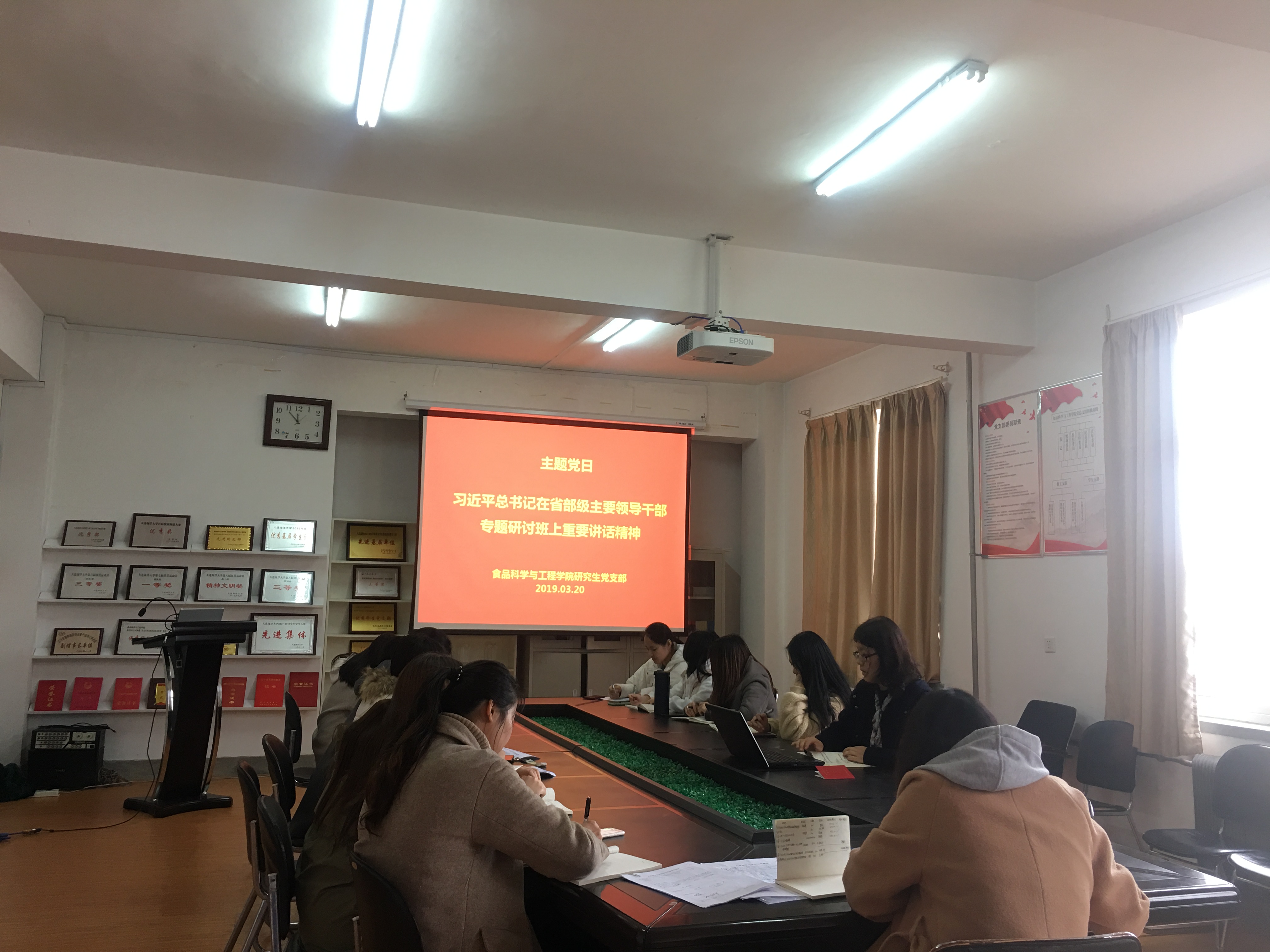 2019年3月20日,太阳集团网tyc9728研究生党支部开展主题党日活动,支部全体党员集中学习了习近平总书记在省部级专题研讨班上重要讲话,传达学习了习近平总书记坚持思维着力防范化解重大风险精神。会议由张可佳主持。