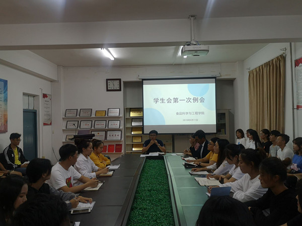 9月11日,我院在团委会议室召开2019-2020学年学生会第一次例会。团委书记唐珏,辅导员马骉及新一届学生会全体成员共同参加会议,会议由唐珏主持。