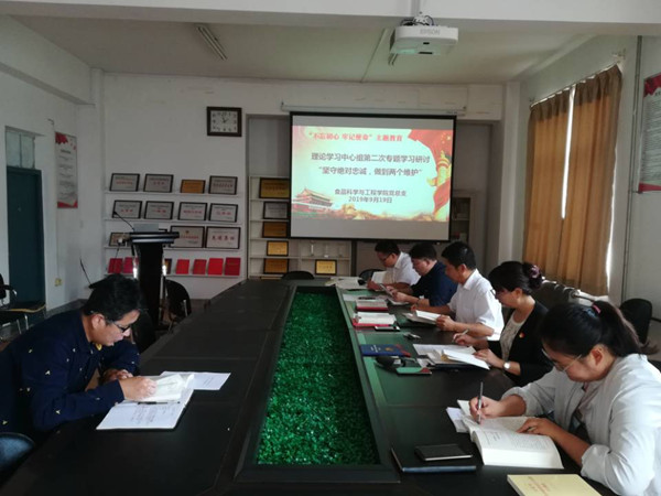 9月19日,太阳集团网tyc9728党总支在学院党员活动室召开理论学习中心组“不忘初心、牢记使命”主题教育“坚守绝对忠诚,做到‘两个维护’”专题学习会议,学院理论中心组成员参加会议,会议由党总支书记高璐璐主持。