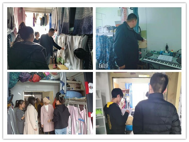 根据校区和寝室分布,检查分四组同时开展。各组逐一进行寝室卫生检查,排查安全隐患,强调严禁使用违规电器等规定,并为各个寝室拍照打分。
