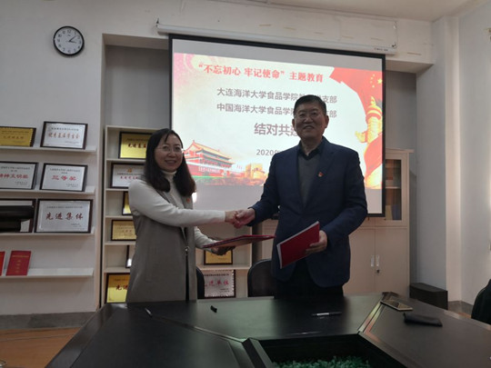 2020年1月9日,我院教工党支部(以下简称“食品教工党支部”)在学院会议室与中国海洋大学食品科学工程学院教师第一党支部(以下简称“教师第一党支部”)签署了“党支部结对共建协议”。学院党总支书记高璐璐、院长赵前程、教师第一党支部书记林洪,食品教工党员出席此次活动。