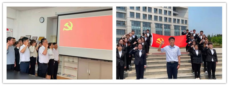 活动中,全体党员面对鲜红的党旗,庄严的宣誓,以饱满的激情和声音传达出身为共产党员的自豪感和使命感。响亮的誓词回荡在全体党员的心间,表达了庆祝党的百年华诞的激动心情。
