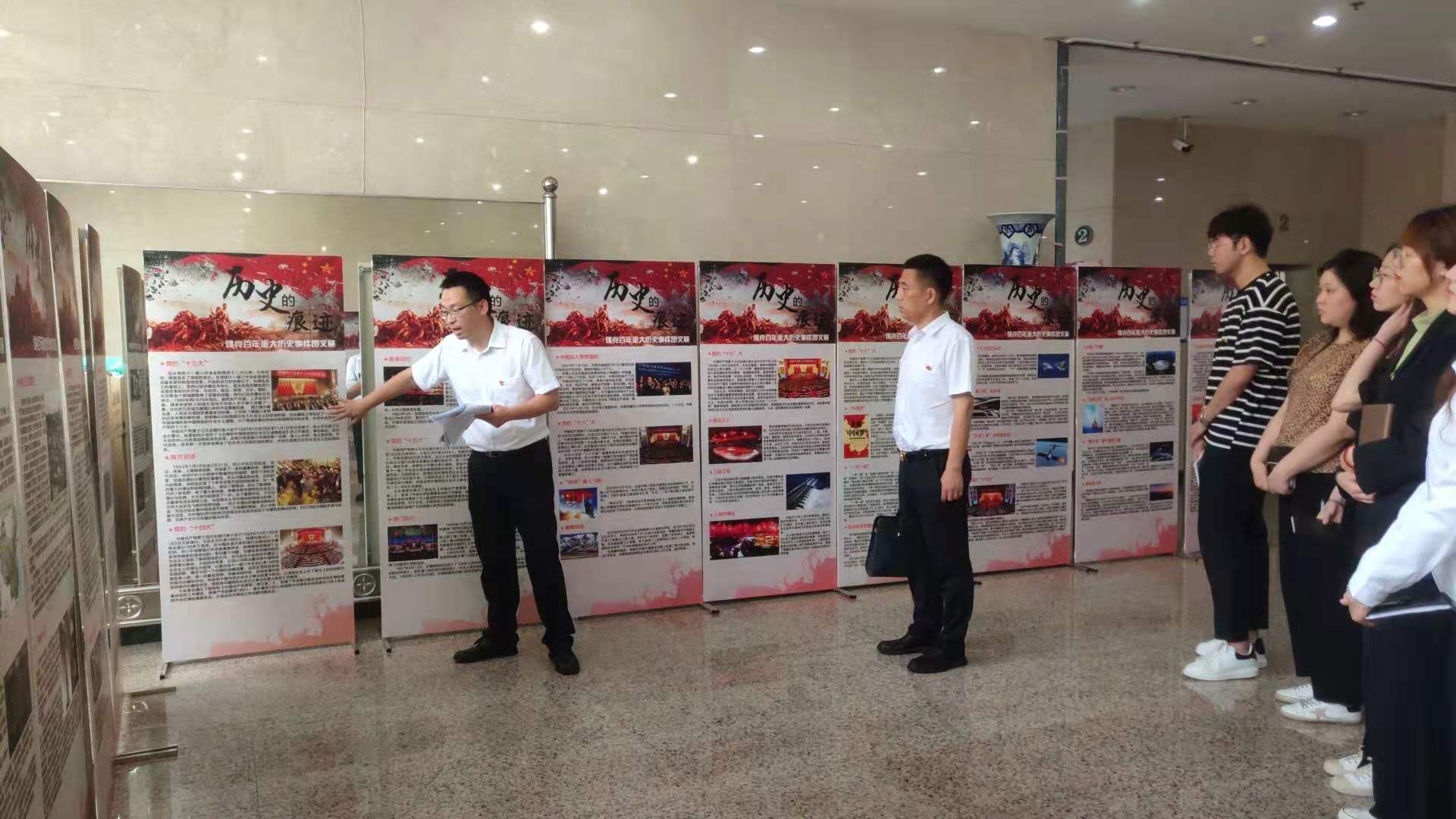 在图书馆二楼展厅,武家春结合“历史的痕迹”建党百年重大历史事件图文展,以“红色足迹忆党史——改革开放和社会主义现代化建设新时期”为题讲授了专题党课。通过一幅幅详实的图片和详细的讲解,学生党员们深刻感受到了中国共产党奋斗的艰辛、改革的决心以及取得的辉煌成就。