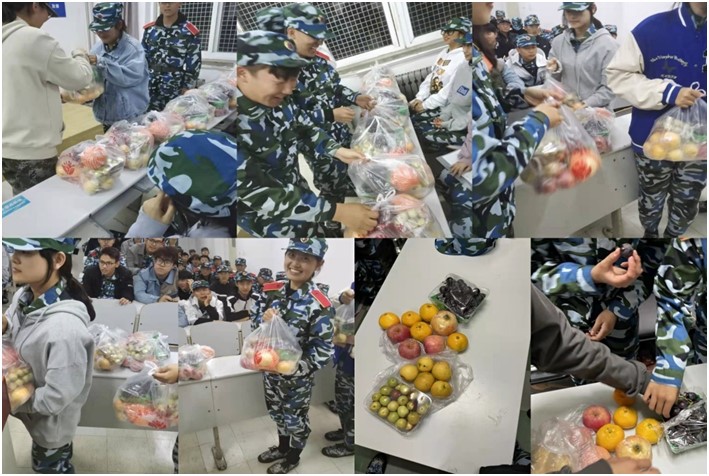 武家春对大家军训期间的辛苦付出表示肯定,鼓励大家刻苦训练。军训时光虽然辛苦,但是这样一段难忘的经历,将成为人生回忆中的宝贵财富。希望同学们可以调整状态,为接下来更为艰苦的军训生活做好准备。会后,学院还为全体2021级新生分发了水果,表达了心意。