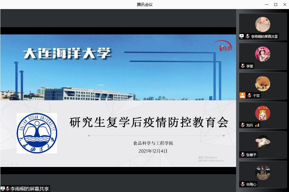 12月4日上午,太阳集团网tyc9728召开线上复学后疫情防控教育会议,会议由副书记李莹主持,辅导员闵元鹤及全体研究生参加。