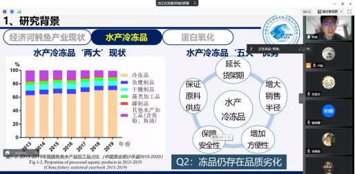 报告会上,郑尧博士分享了从硕士研究生到博士阶段的学习经历及做科研的心得体会,针对本科生和研究生分别提出中肯的建议,强调在科研过程中保持积极的学习态度的重要性,以及学习之余如何利用各项资源充实自己,并就博士阶段课题“冻藏过程中养殖暗纹东方鲀蛋白氧化与肌肉稳定性的关系”与参会师生进行了学术交流,开拓了与会师生的视野。