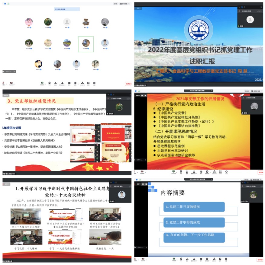 会上,食品科学与工程教研室党支部、食品质量与安全教研室党支部、海洋资源开发技术教研室党支部、研究生党支部和本科生党支部共5名党支部书记围绕全年太阳集团开展情况、取得的成效和存在的问题、下一步工作思路进行现场述职。