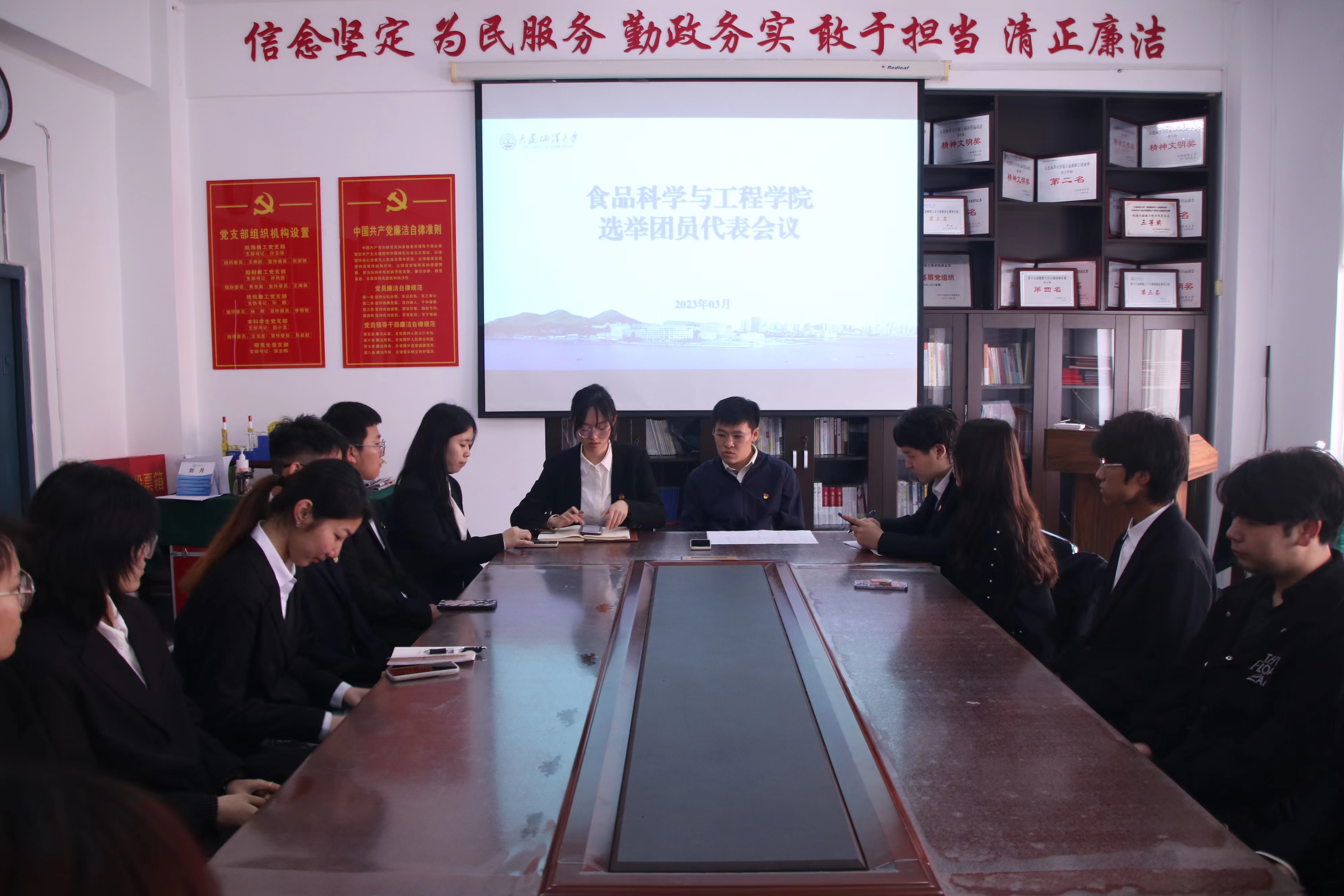 会上,唐珏对本学期的共青团工作进行了布置,并针对重点工作进行了强调和说明,他指出,共青团工作作为党的建设和思想政治工作的重要组成部分,对每位团干部都有极高的要求,团干部要提高认识,认真学习贯彻习近平新时代中国特色社会主义思想和党的二十大精神,为广大学生作出表率。团委副书记安昭宇汇报了9728太阳集团第二次团代会的正式代表选举情况,通过了选举唐珏、曾劲澜、李娅倩、陈镜如、秦浩楠、孙宇宁、王灏谕、张航作为正式代表参加9728太阳集团第二次团代会。