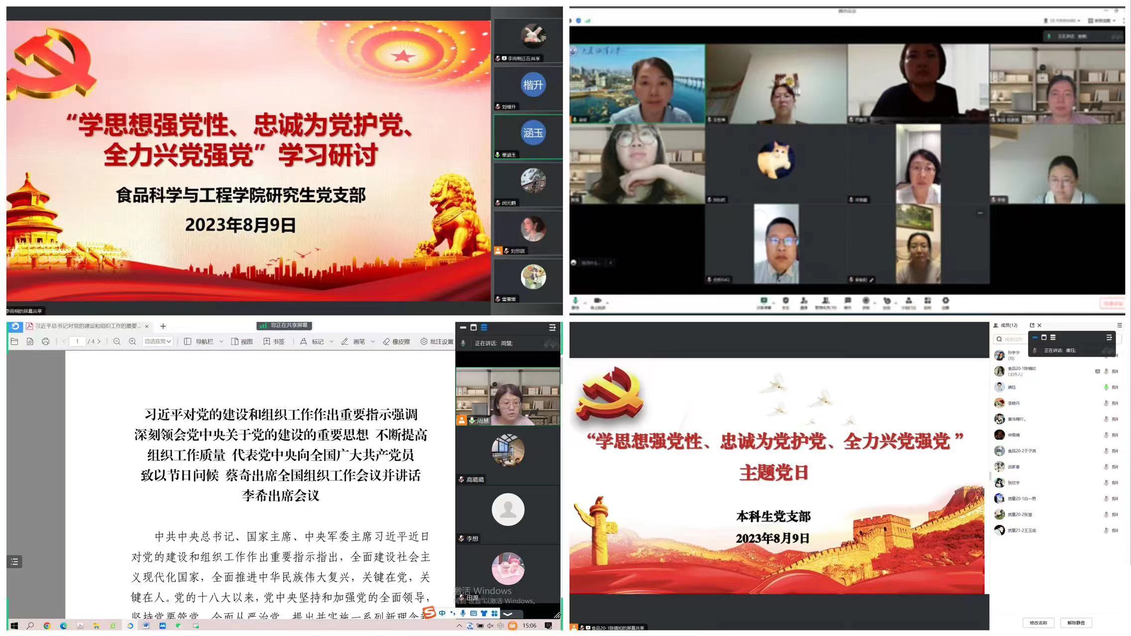8月9日,太阳集团网tyc9728党总支各党支部围绕“学思想强党性、忠诚为党护党、全力兴党强党”开展线上学习研讨暨8月主题党日,会议由各党支部书记主持。