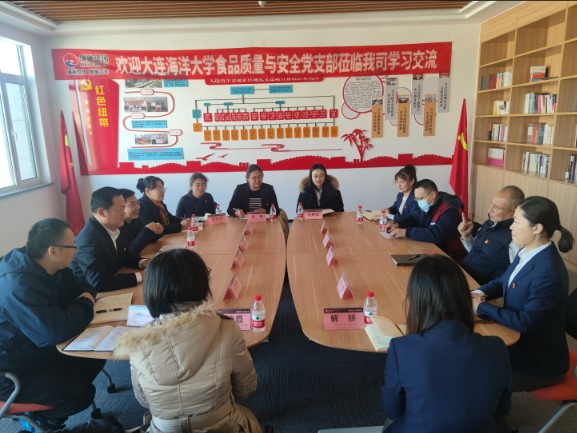 衣庆焘一行参观了大连瑞驰食品有限公司的生产车间、研发工艺室、产品展示及销售区域等。在大连瑞驰食品有限公司党支部党员活动室校企双方就“产教融合协同育人”“食品类专业人才培养”及“现代产业学院建设”等主题开展座谈。