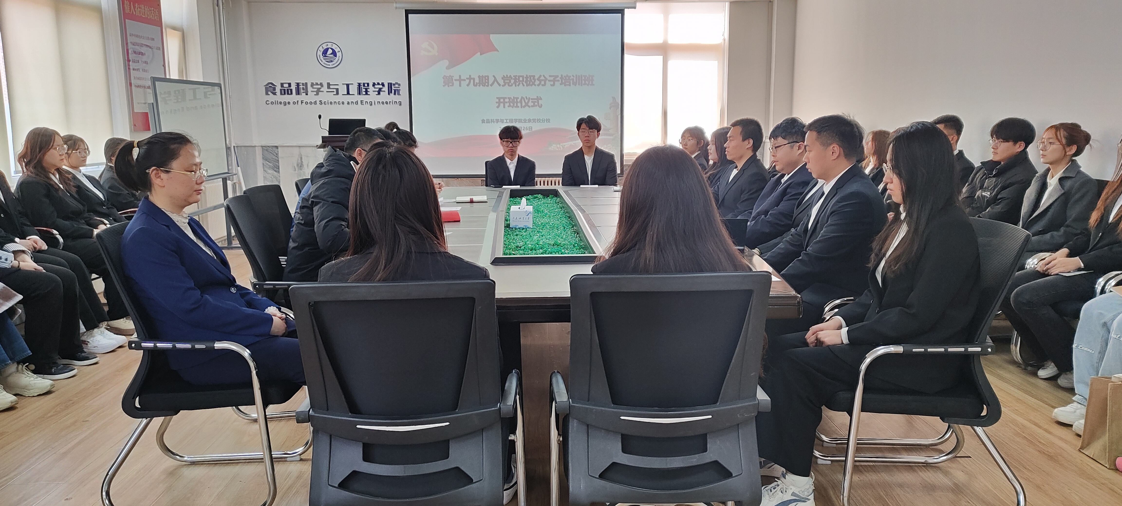 3月26日,太阳集团网tyc9728党校分校在党员活动室召开了第十九期入党积极分子培训班开班仪式。学院党总支副书记武家春、本科生党支部书记唐珏、研究生党支部书记闵元鹤及第十九期入党积极分子参加仪式。会议由组织员田源主持。