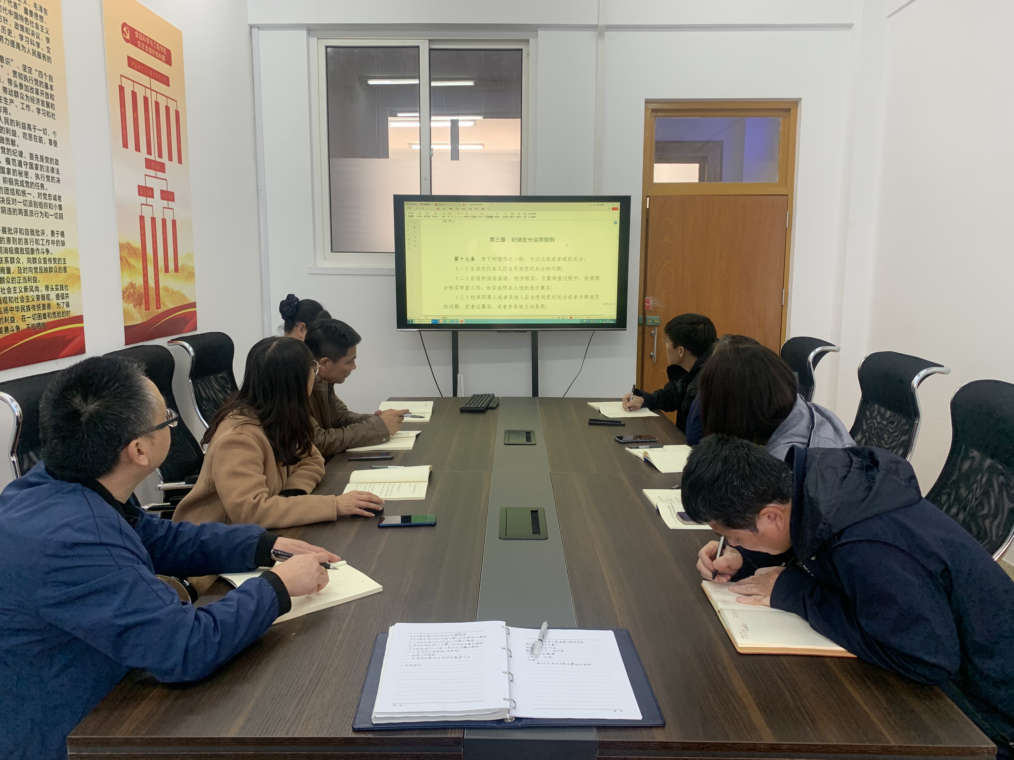 会上,按照上级关于开展党纪学习教育的安排部署,理论学习中心组成员分别逐章逐条领学了《中国共产党纪律处分条例》。