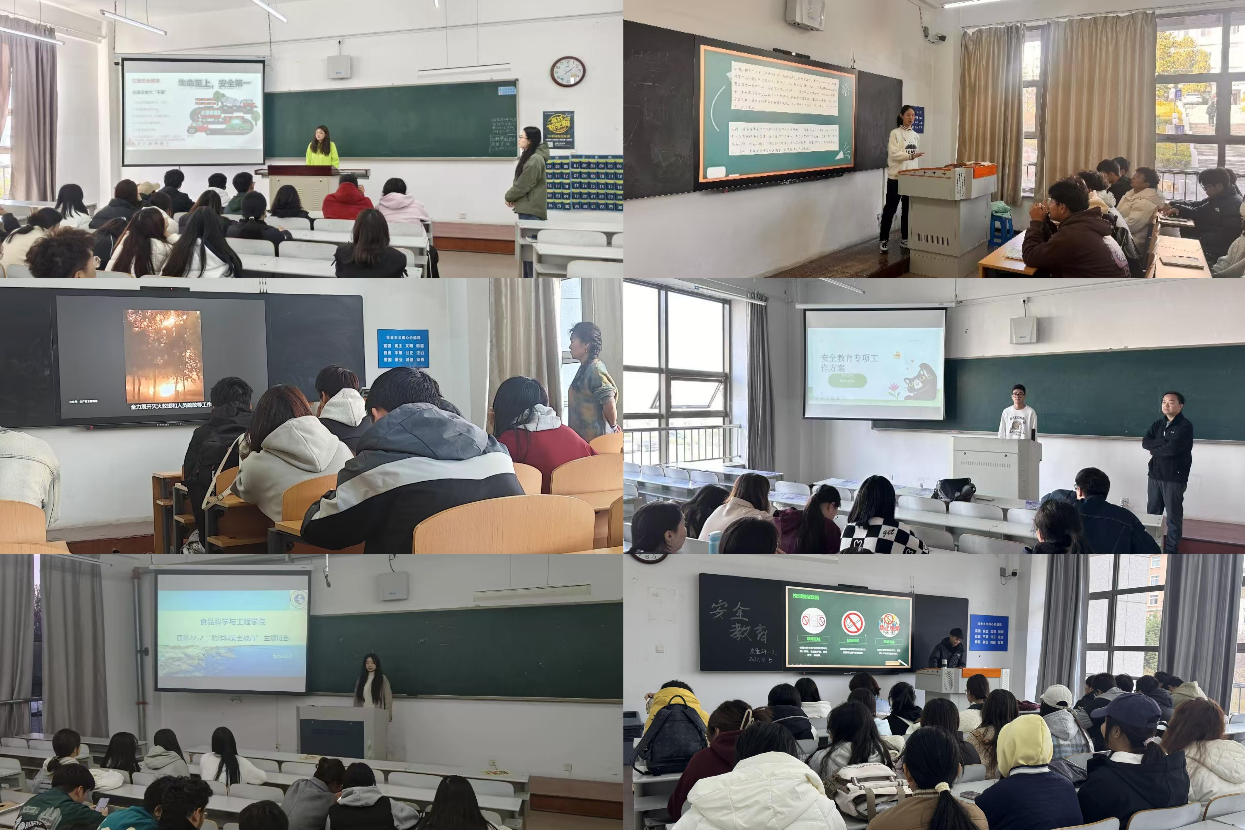 会上,各班班导师围绕防诈骗安全教育、宿舍消防安全教育、交通安全教育、禁烟教育、法治法律教育等五个方面开展校园安全教育。通过生动的案例,对典型案例进行分析教育,选取近年来发生在高校校园内及周边典型的诈骗事件、交通事故、宿舍火灾事故等,通过图片、视频等形式进行展示,向学生强调了安全教育的重要性,进一步强化安全教育。