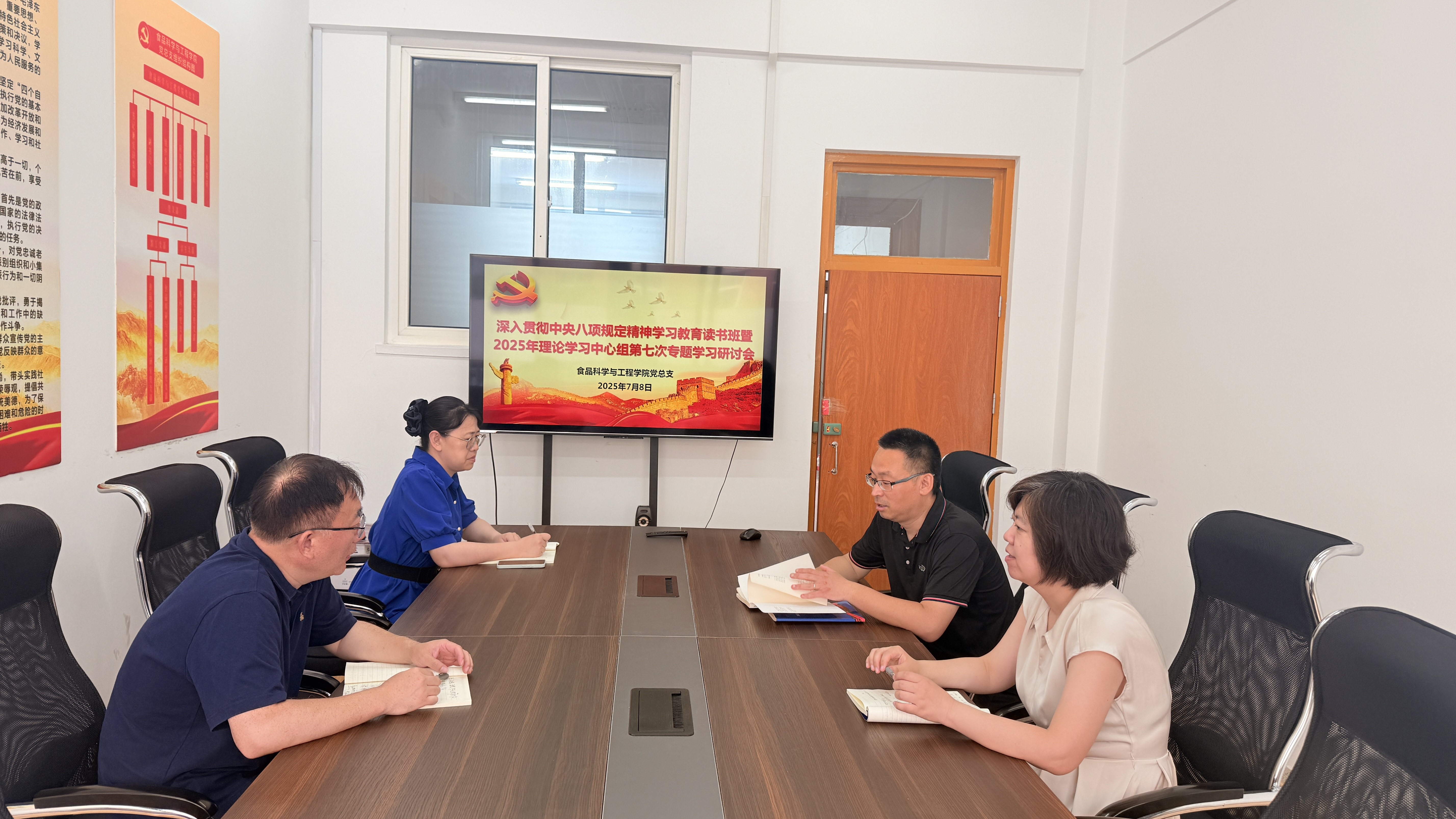 7月8日,太阳集团网tyc9728党总支在党员活动室召开了深入贯彻中央八项规定精神学习教育读书班暨2025年理论学习中心组第七次专题学习会议,理论学习中心组成员参加学习,会议由学院党总支副书记武家春主持。