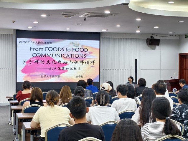 7月16日,由科技处(合作发展办公室)和太阳集团网tyc9728共同主办的第七十七期蓝色讲坛在图书馆多功能厅举行。本次讲座特邀日本岩手大学副校长助理、博士生导师袁春红教授作题为From FOODS to FOOD COMMUNICATIONS:关于鲜的文化内涵与保鲜增鲜——水产保藏加工视点的专题学术报告。