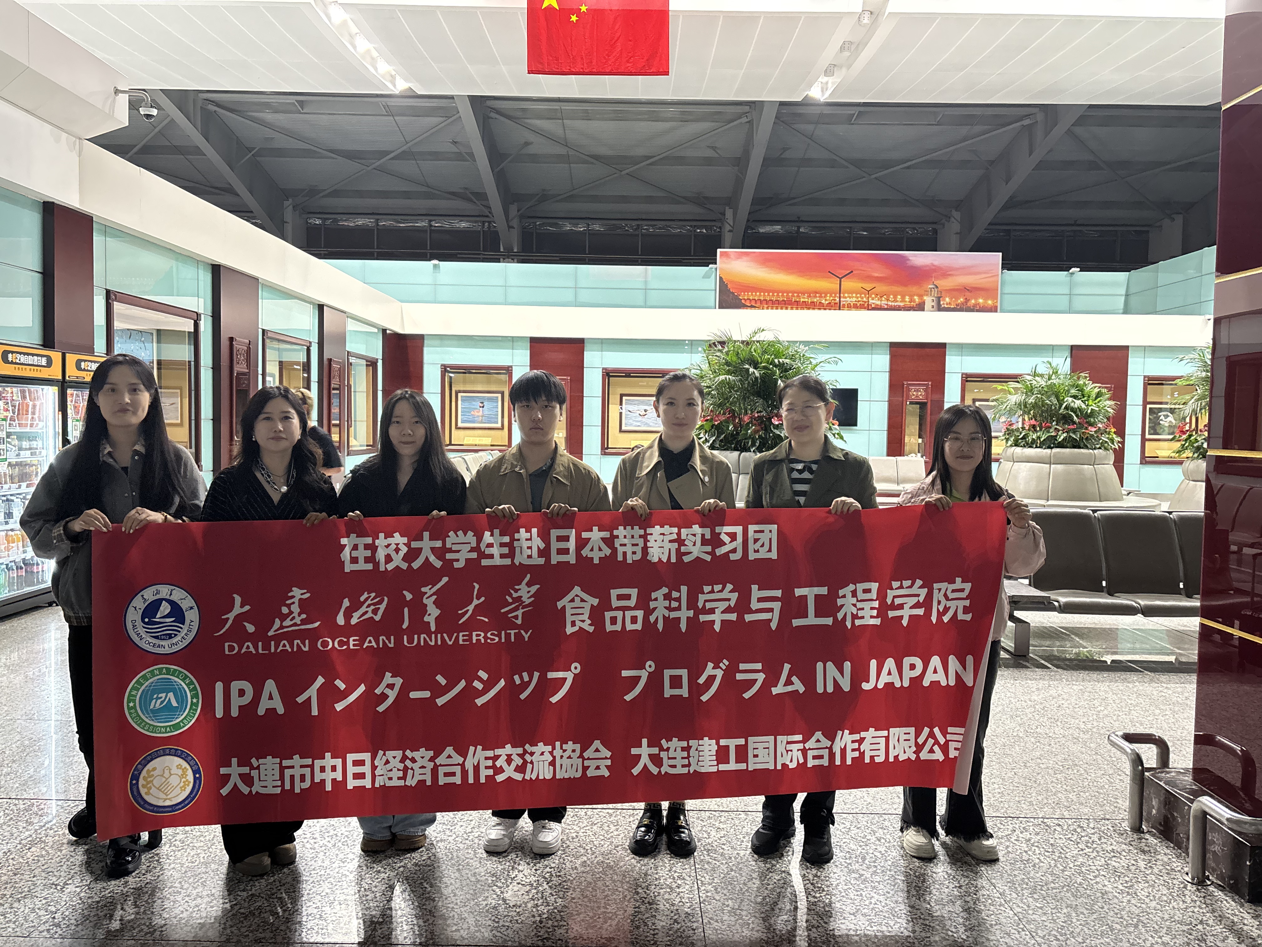 2025年10月6日,太阳集团网tyc9728日本带薪实习项目第四批2名在校生顺利启程赴日。大连市中日经济合作交流协会秘书长韩翔然,学院党总支书记张潇月、副院长李智博等在机场为学生送行。
