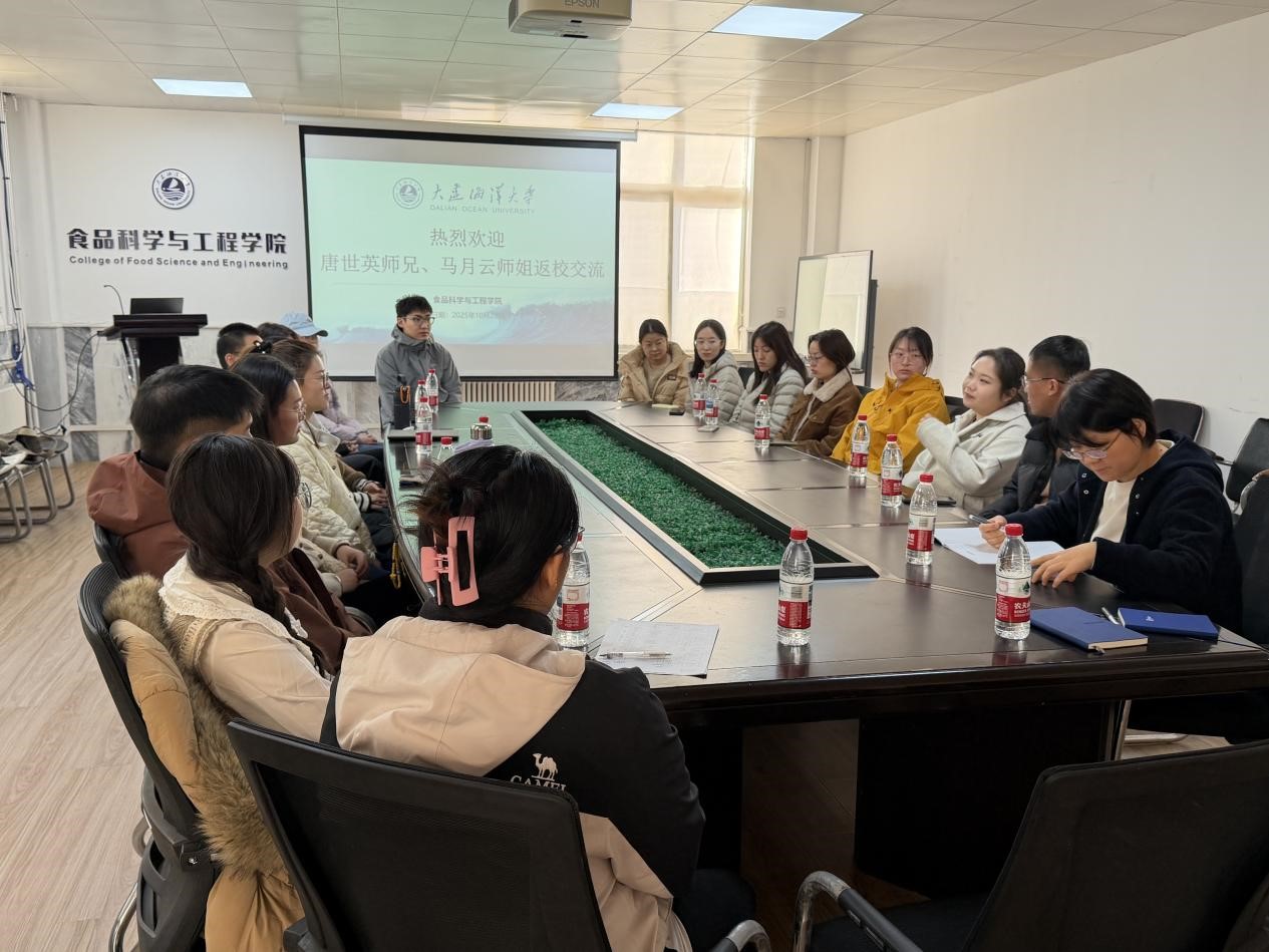 20251023日,学院邀请两位优秀校友——2022届专硕、上海海洋大学博士研究生唐世英和2023届学硕、集美大学博士研究生马月云返校,与部分在校研究生座谈,分享科研体会。