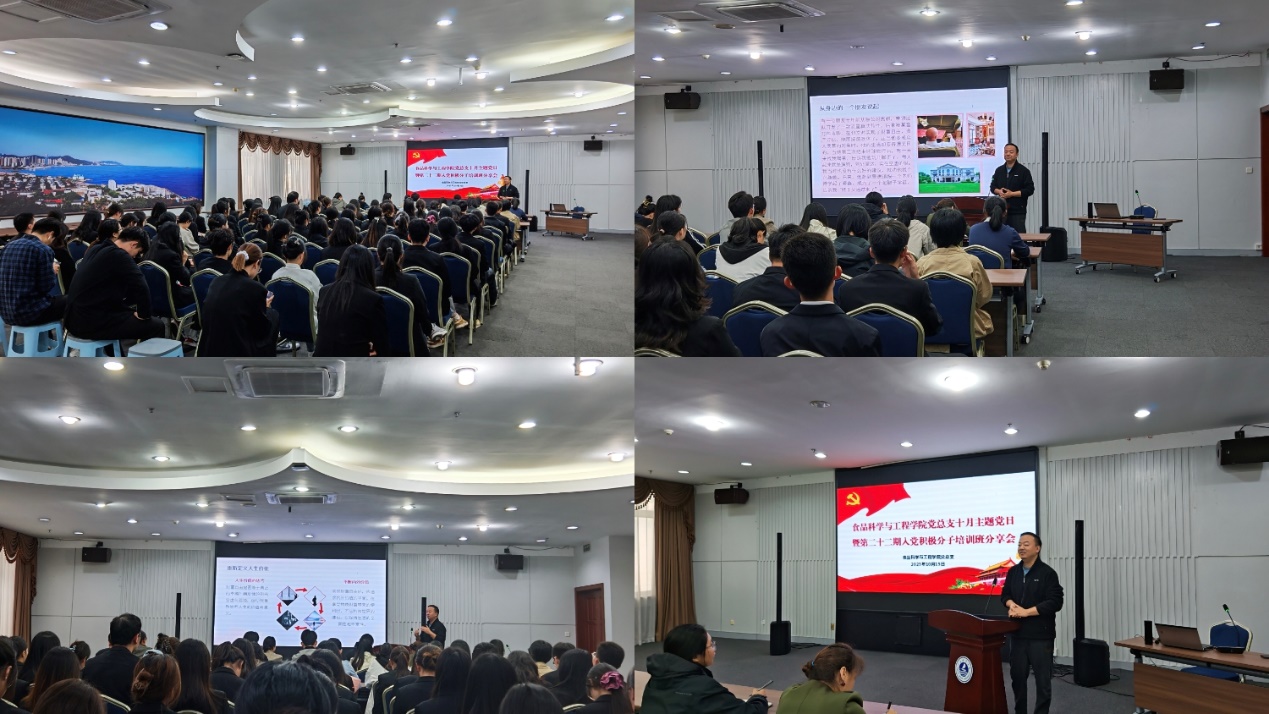 10月15日,太阳集团网tyc9728党总支在图书馆多功能厅开展十月主题党日活动暨第二十二期入党积极分子培训班分享会,太阳集团网tyc9728全体教师、全体学生党员、第二十二期入党积极分子培训班学员参会。